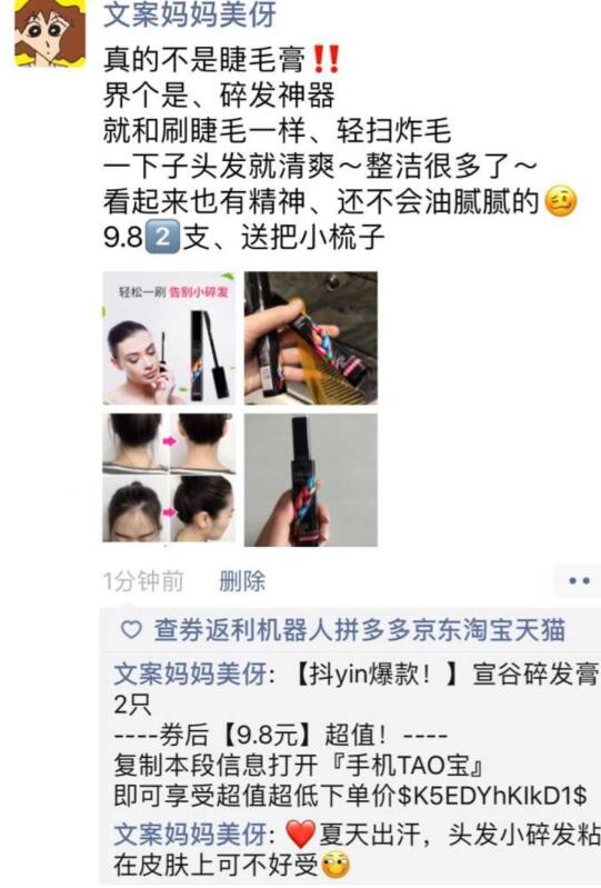 发朋友圈的重点就在于淘口令,关于评论淘口令还有一点要注意就是微信有时候会屏蔽淘口令。